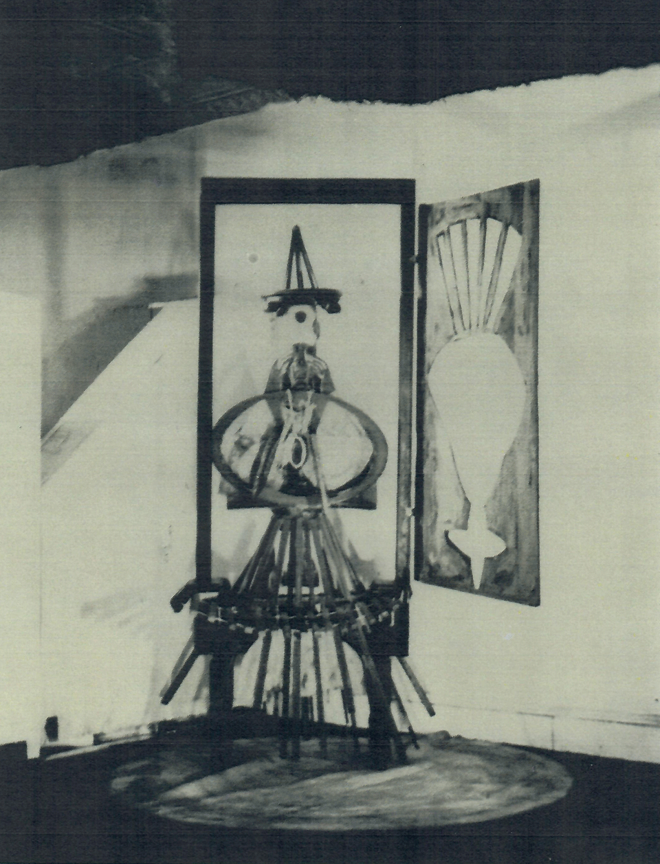 In 1963 I built this large wooden construction (10’ x 8’ x 6’) of a ritualized female figure in meditative pose playing a built-in xylophone. I originally named her Priestess/Musician/Witch. My understanding of the meaning of this image deepened with the passing of time and increased reflection. When I finally transformed that long cumbersome name… Continue reading RUNE QUARTET, a memoir-driven historical work of four novels beginning with The Fire Dragon Street Theater was inspired by the sculpture seen below.